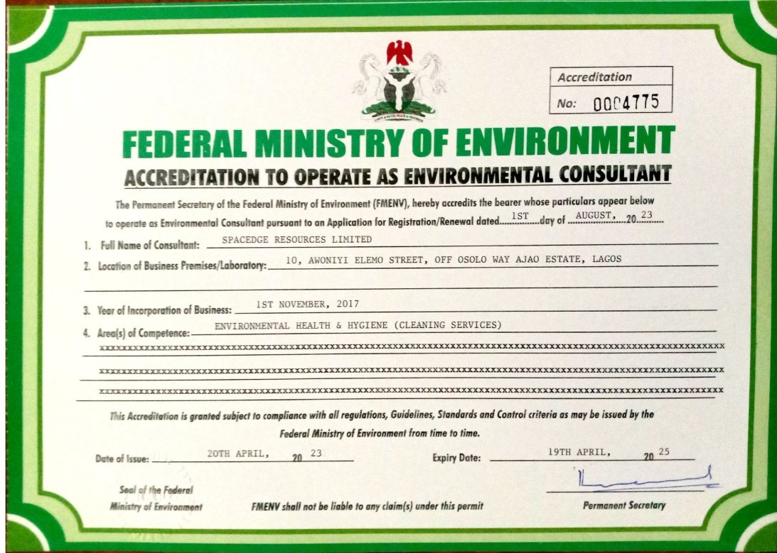 OUR CERTICATION OUR EQUIPMENT Contact Us Have questions about our commercial cleaning services? Interested in a customized cleaning plan for your business?We’re here to help! Feel free to reach out to our friendly team with any inquiries or to schedule a consultation. Our Contact Information No. 10 Awoniyi Elemo Street Ajao Estate Off Airport Road Lagos +2348073949543 +2349084422591 info@spacedgeresources.com Our Social Media Platform Please enable JavaScript in your browser to complete this form.Please enable JavaScript in your browser to complete this form.Submit